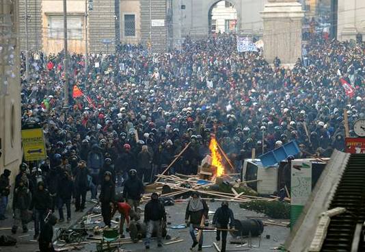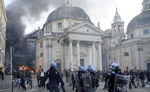 Miles y miles de manifestantes en el centro de la Ciudad Eterna.