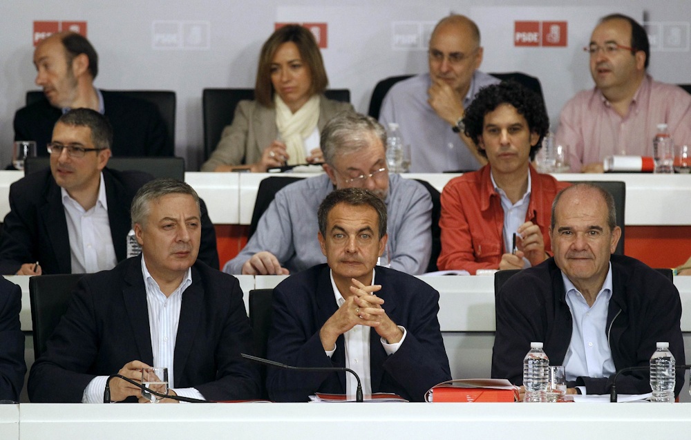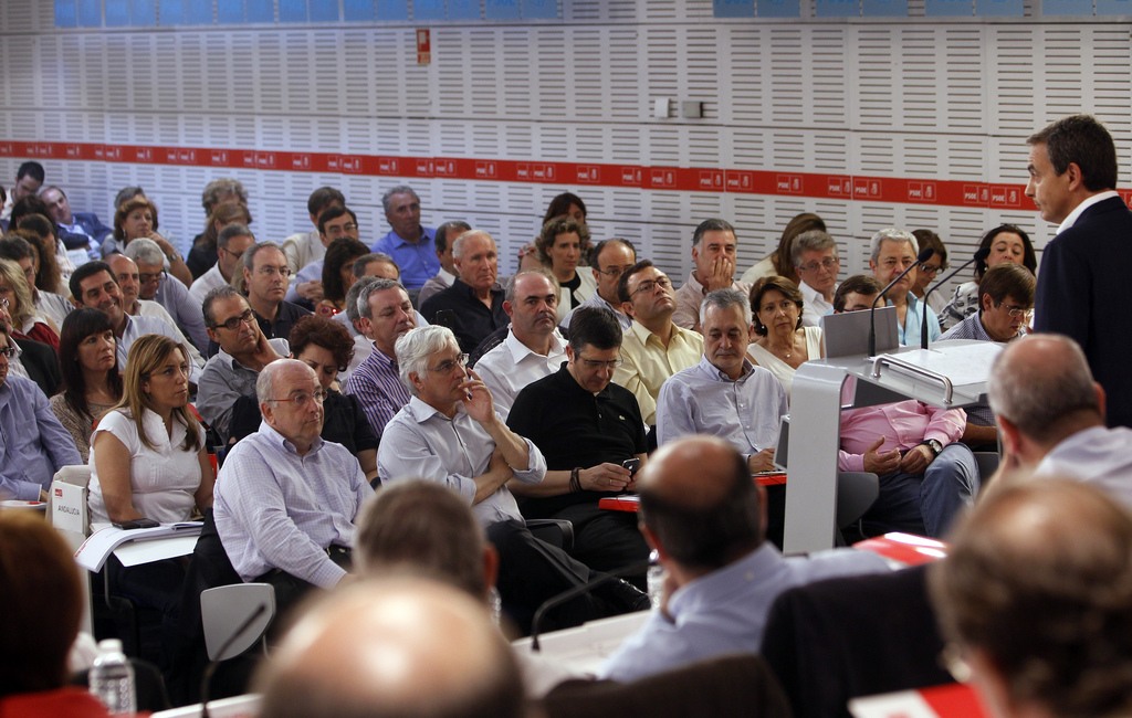 Zapatero en el Comité Federal del PSOE seis días después del batacazo del 22-M.