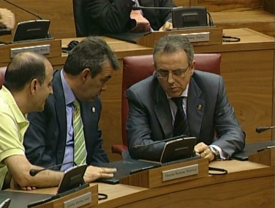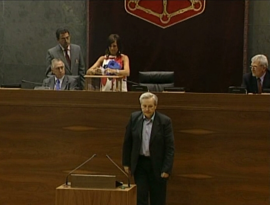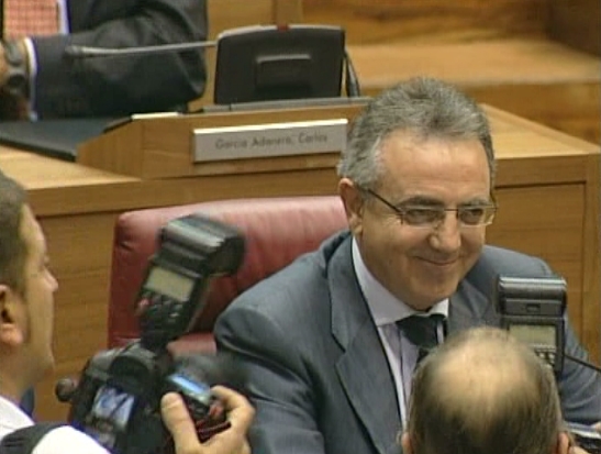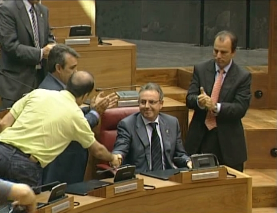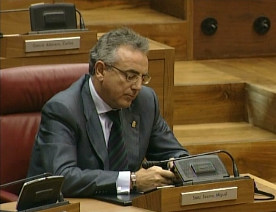 Miguel Sanz llegó al salón de plenos del Parlamento de Navarra rodeado de una gran espectación. (LDTV)