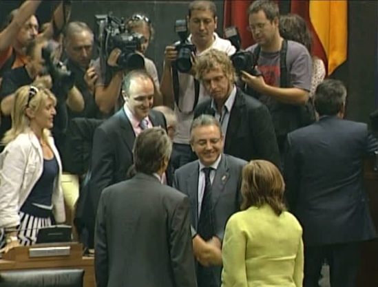 Tal y como estaba previsto, Miguel Sanz ha sido reelegido presidente de Navarra. Tras la sesión de Investidura cuatro dirigentes del PSN han presentado su dimisión