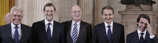 Nicolás Sarkozy reunió en el Palacio Real a todos los últimos presidentes del Gobierno. Fue la reaparición de José Luis Rodríguez Zapatero en un acto público. En la imagen, con el monarca
