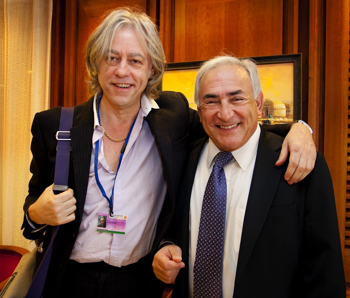 Ya como presidente del FMI, Strauss-Kahn recibió la visita del músico Bob Geldolf. También llegó su primer escándalo en la entidad. Una subordinada le acusó de haberse aprovechado de su cargo para tener relaciones sexuales con ella. Tras una investigación, el FMI dictaminó que no había habido infracción alguna.