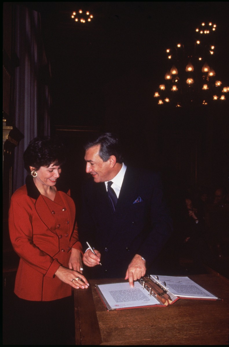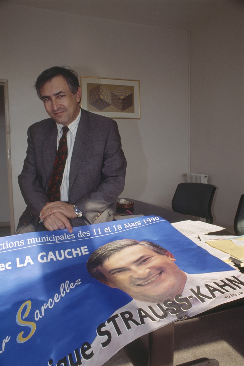 Doctor en Económicas, Dominique Strauss-Kahn, nacido en abril de 1949, dio el salto a la política en 1986 tras ejercer como profesor universitario. Comenzó siendo asesor económico del partido y después se convirtió en diputado. Fue alcalde en la localidad de Sarcelles en 1995. En esta imagen, tomada en 1990, estaba haciendo campaña.