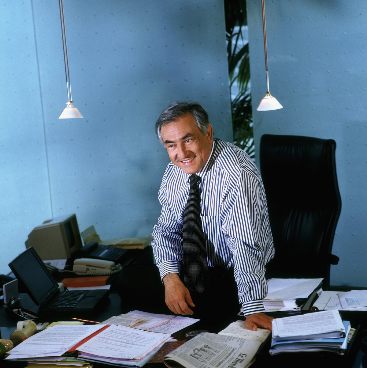 Strauss Kahn, en su despacho durante su periodo como ministro en el Gobierno de Lionel Jospin. Estuvo en el cargo sólo dos años. El motivo, un escándalo, aunque esta vez no relacionado con las faldas.
