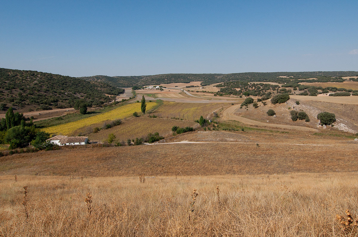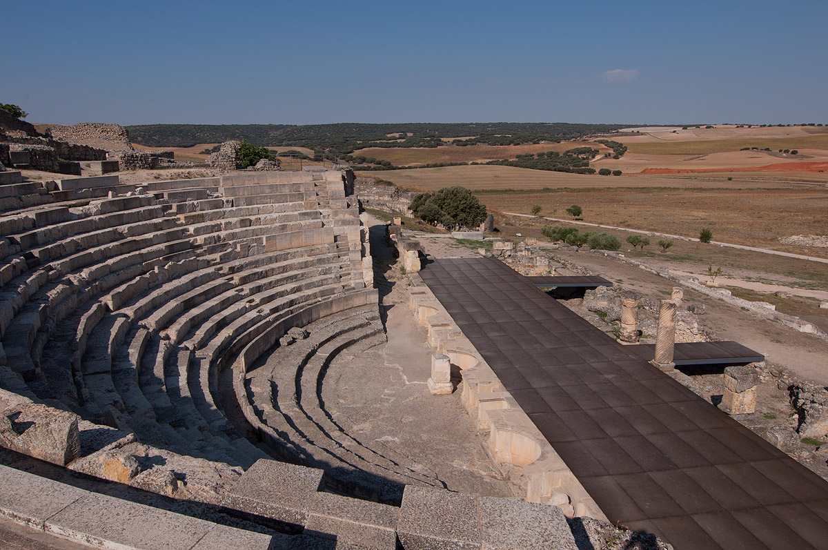 Desde los asientos en los que se sentaban los espectadores en el S II se ve ahora el paisaje castellano que rodea Segóbriga