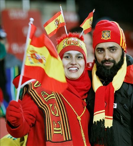 Una pareja de aficionados españoles en el Ellis Park de Johannesburgo.