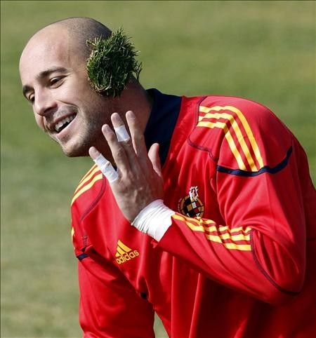 El guardameta de la selección española Pepe Reina bromea durante el entrenamiento realizado ayer en Potchefstroom