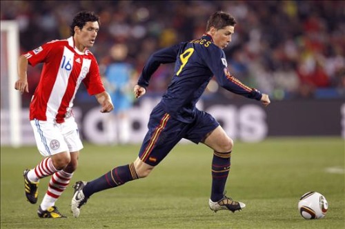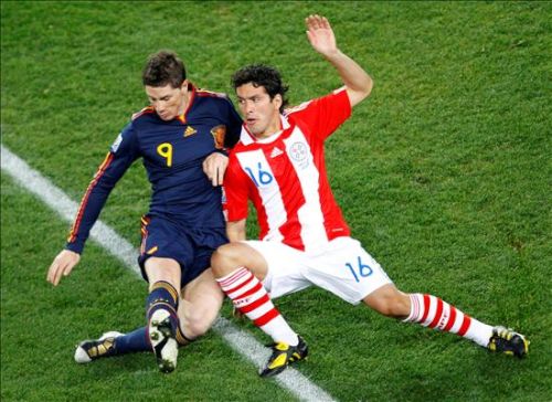 El paraguayo Cristian Riveros,iz, y Fernando Torres,d, en plena acción.