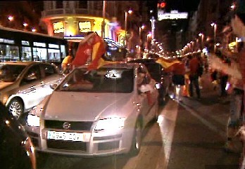 Todas las ciudades españolas se llenaron de coches con banderas de España. (Imagen TV)
