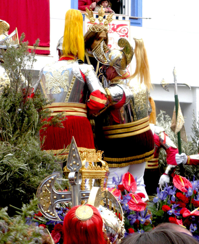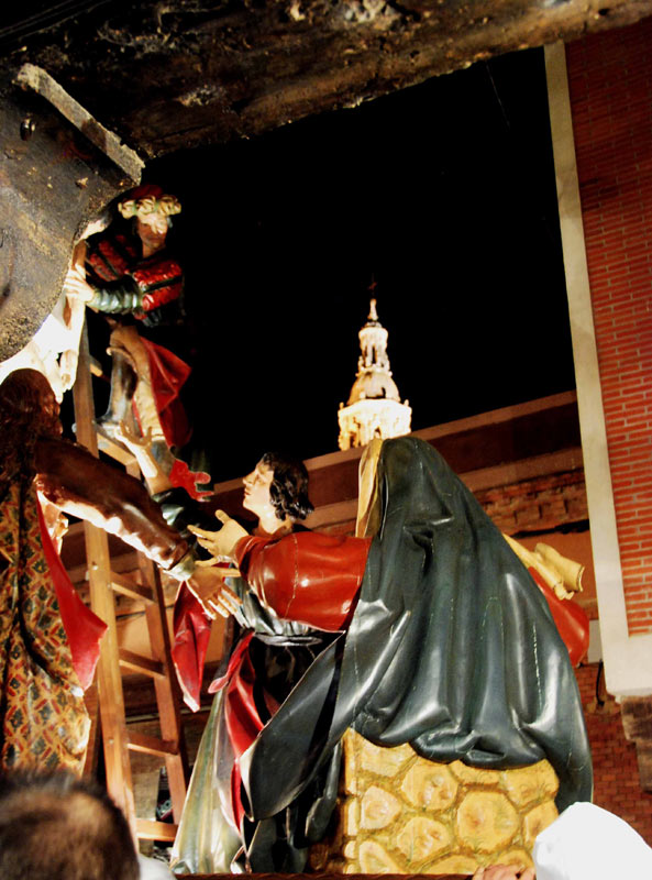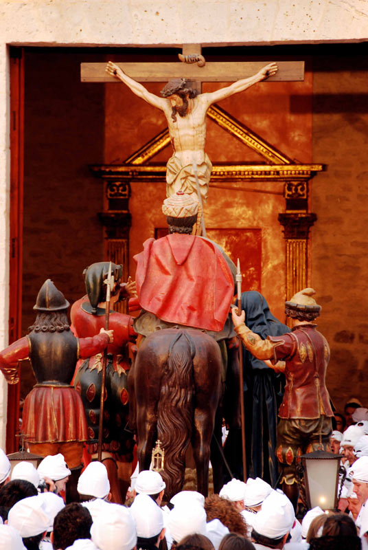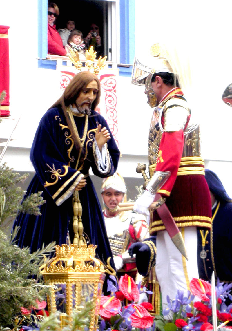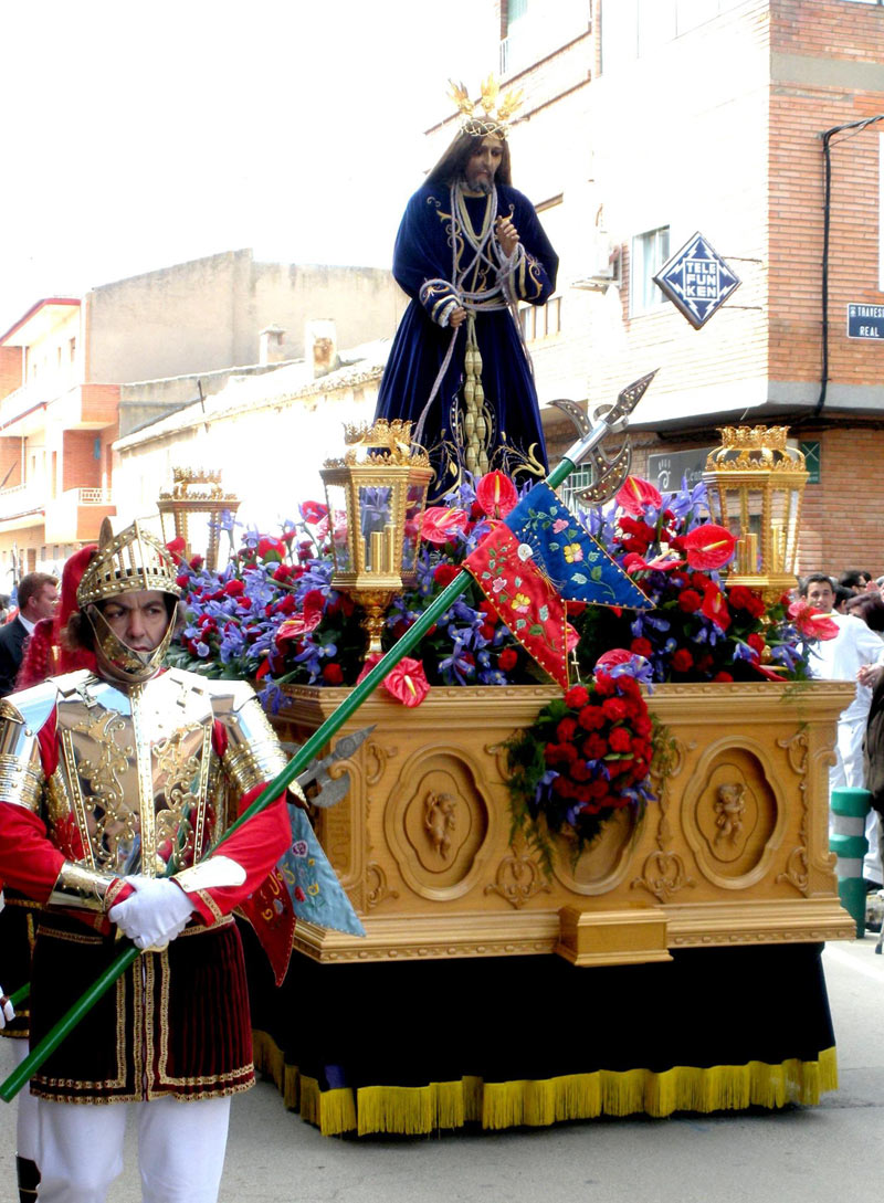 Se trata de Jesús procesionando en carroza atado y custodiado a ambos lados por soldados romanos o "ARMADOS" o "ARMAOS" como se denomina históricamente en ALDEA DEL REY (Luis Pardo)