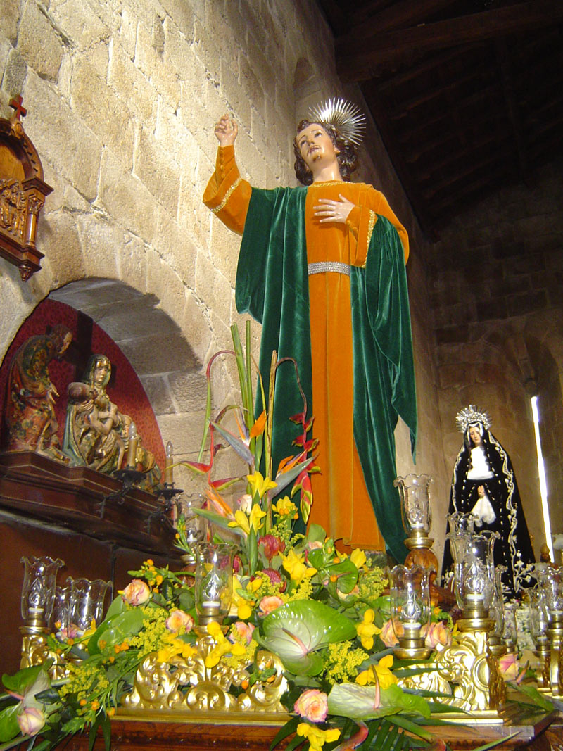 Imagen de San Juan, al fondo la Virgen de los Dolores, instantes antes de salir de la Iglesia de Santa María de Viveiro para la procesión del Santo Entierro el día de Viernes Santo (Justo Martínez Blanco)