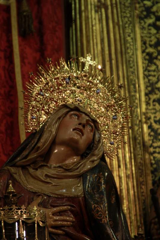 Virgen de las Angustias ó de los 7 cuchillos en su ubicación habitual en la iglesía de las Angustias. (Juan Martín)