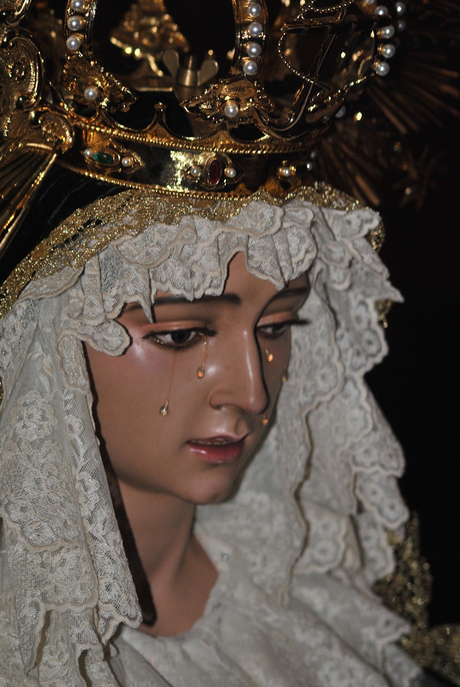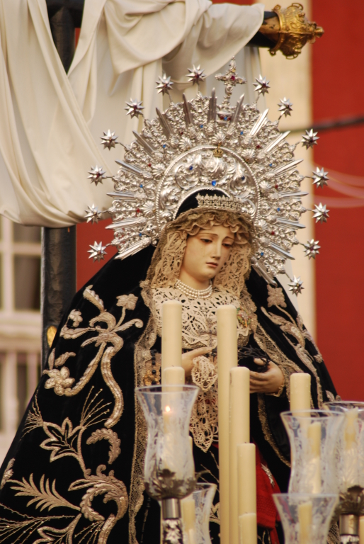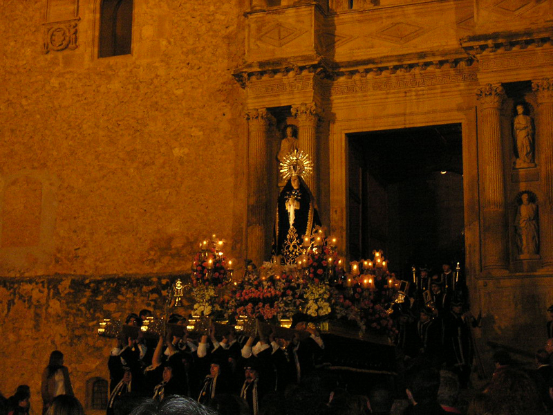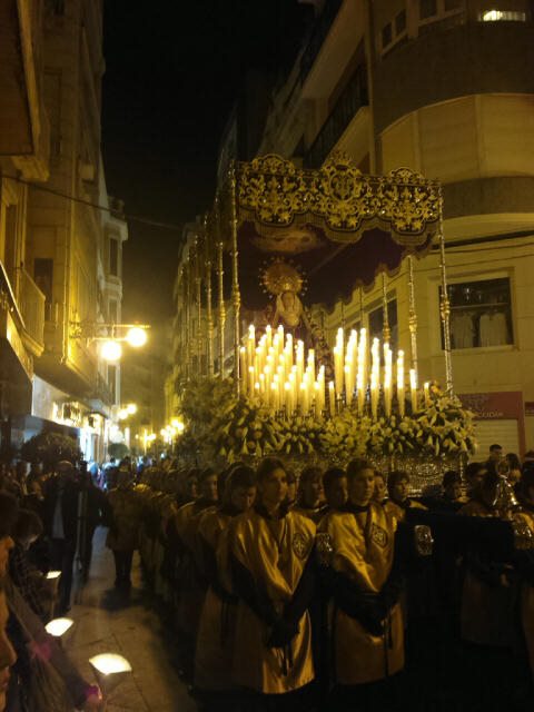Nuestra Señora de la Soledad en su salida la noche de Viernes Santo. Hellín (Fas)