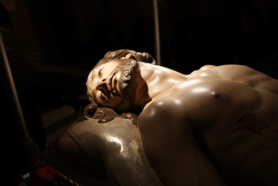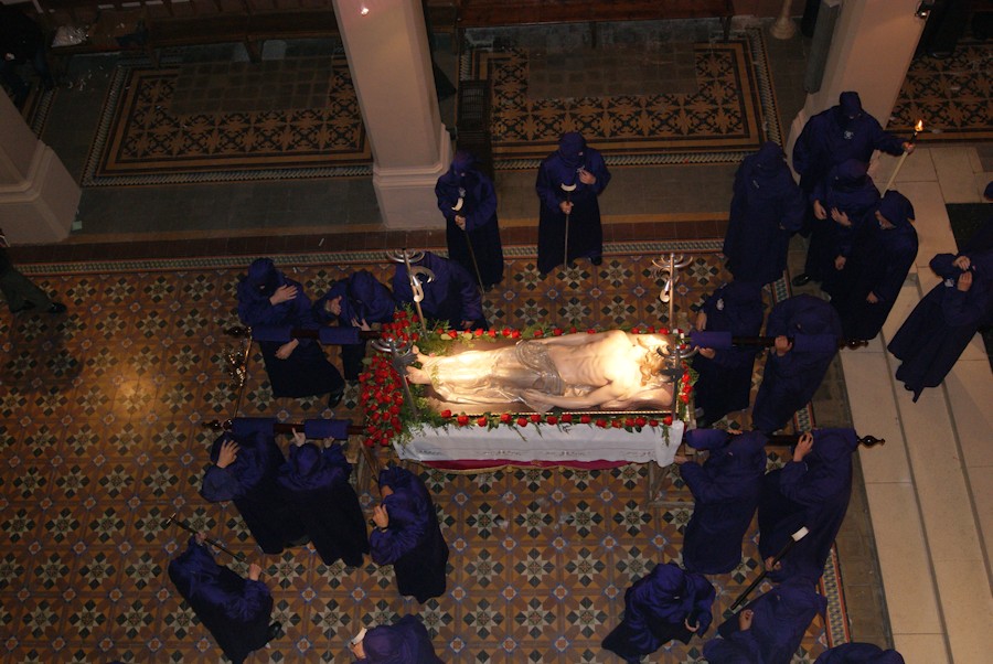Yacente de Lérida antes de salir en la Procesión del Santo Entierro el Viernes Santo.