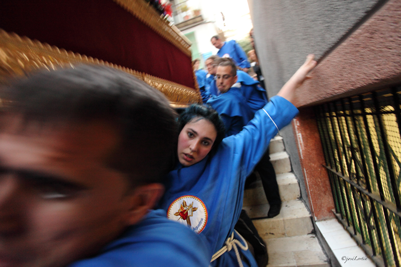 Hermandad Agustina portando el paso "Ntro. Padre Despojado" por las estrechas callejuelas del Barrio de Santa Cruz (Alicante)