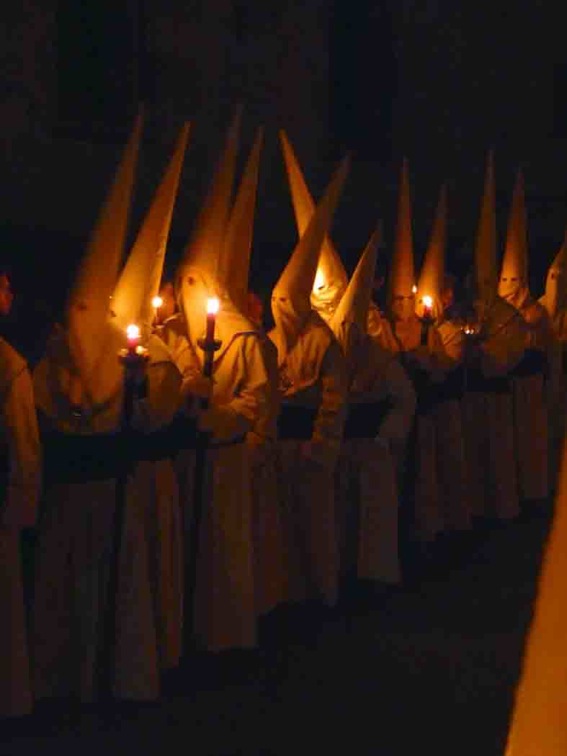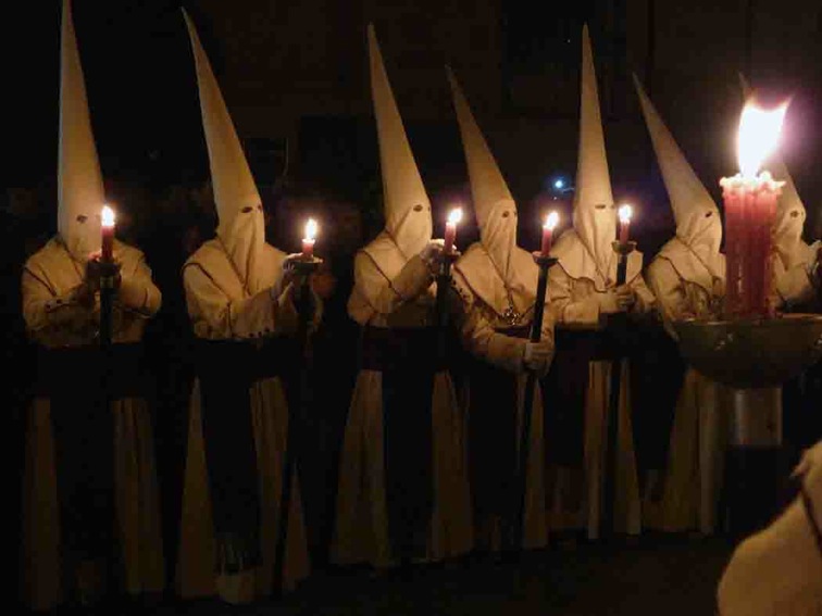 Penitentes de la hermandad de la Misericordia conocida popularmente como los Cerillitos, en el momento de su recogida en el Puerto de Santa Maria (Cadiz).