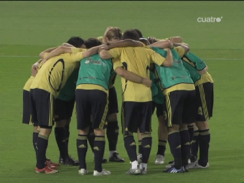 El conjunto español se concentra sobre el césped del Ernst-Happel. (Imagen TV)