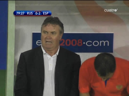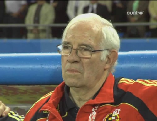 Luis Aragonés, muy serio instantes antes del pitido inicial. (Imagen TV)