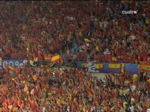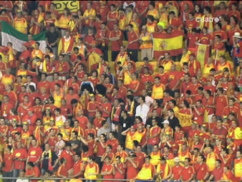Los aficionados españoles esparaban con impaciencia el pitido inicial (Imagen TV)