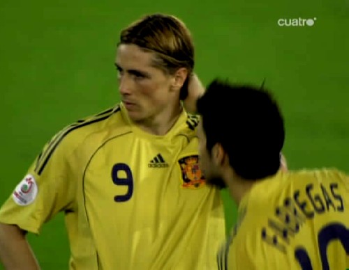 "El Niño" y Cesc Fabregas preparados para empezar el segundo tiempo.