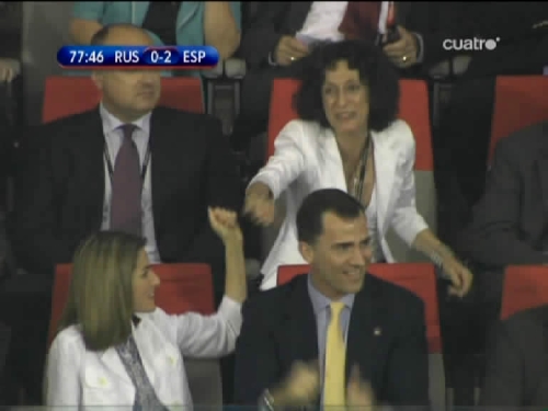 De la Vega también ha saludado a los príncipes de Asturias tras el tanto español. (Imagen TV)