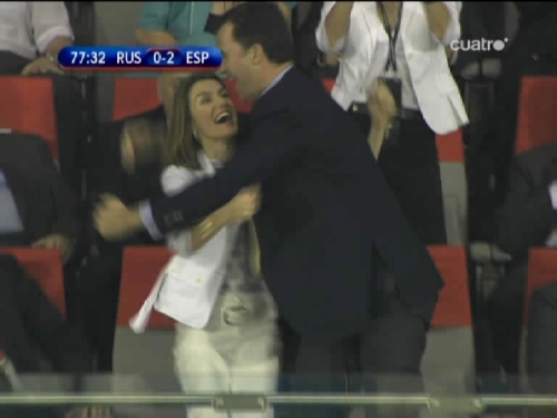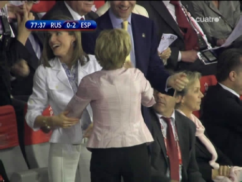 La ministra cabrera saluda a Letizia tras el golazo de Güiza (Imagen TV)