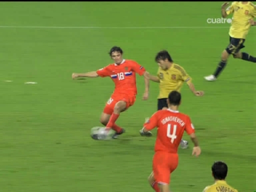 Ahí lo controlaba perfectamente Silva y perforaba la portería rusa. (Imagen TV)