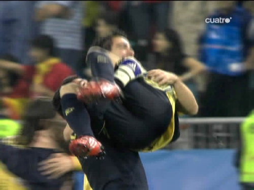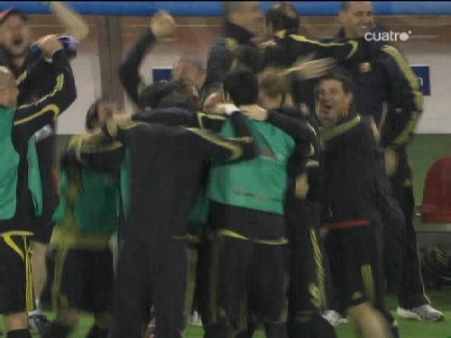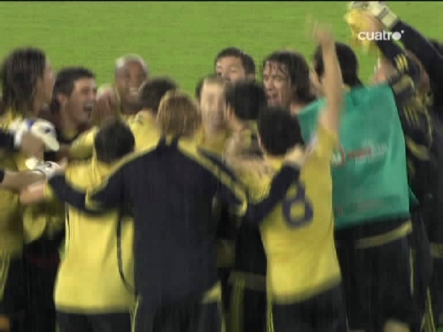 Pocos minutos después del tercer tanto el árbitro pitaba el final del partido y la expedición española estallaba en alegría. (Imagen TV)