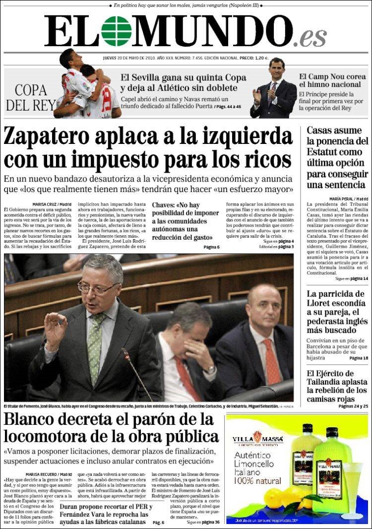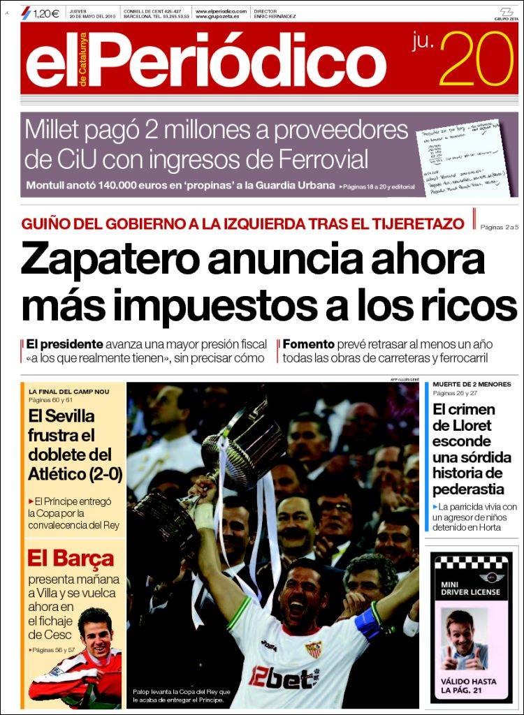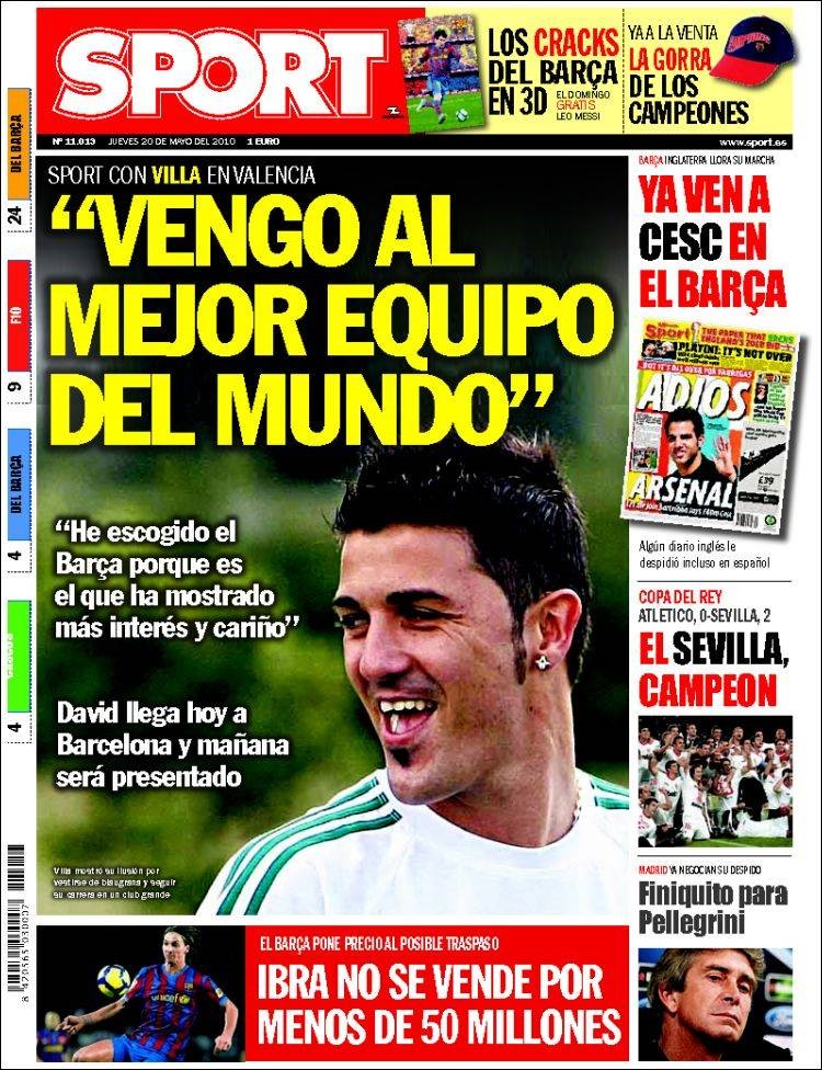 Para el diario deportivo catalán la Copa del Rey sólo merece un pequeño destacado a pesar de que la final se jugó en Barcelona. Villa es el auténtico protagonista.