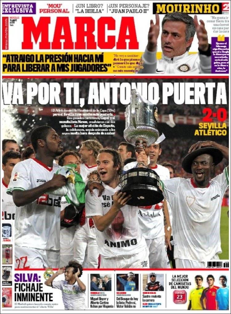 El diario deportivo dedica su portada casi en su totalidad a la final de Copa y tiene un recuerdo para Puerta. Palop recogió el trofeo con la camiseta de su compañero fallecido.