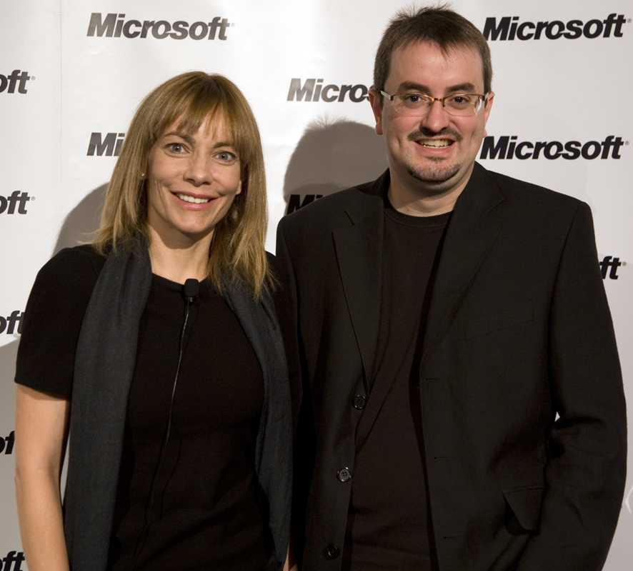 Daniel Rodríguez Herrera junto a María Garaña, presidenta de Microsoft Ibérica, tras la presentación de Windows 7.