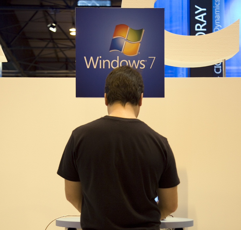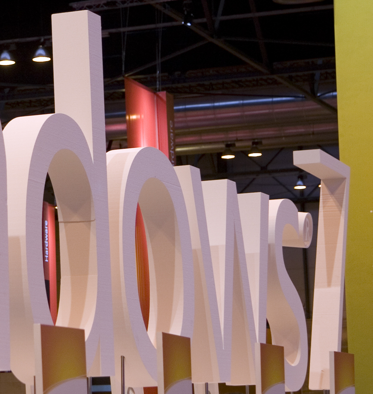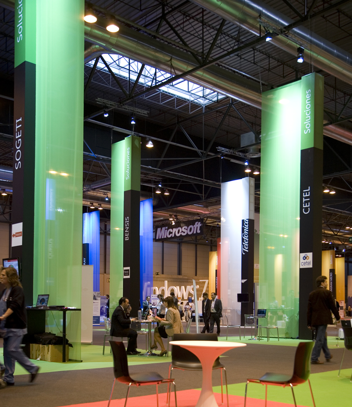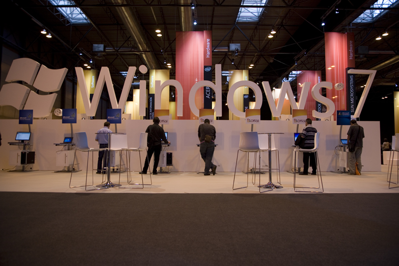 Microsoft presenta Windows 7 con el apoyo explícito de sus socios tecnológicos. El pabellón 7 es un bosque de monolitos que arropa a la casa de Seattle en su día de estreno.