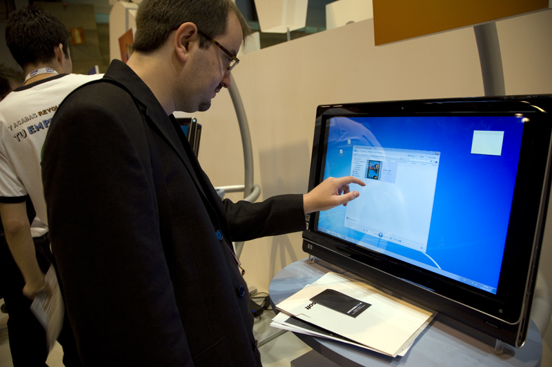 Daniel Rodríguez Herrera toqueteando un ordenador táctil de HP con Windows 7 instalado.