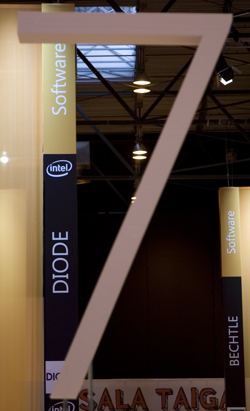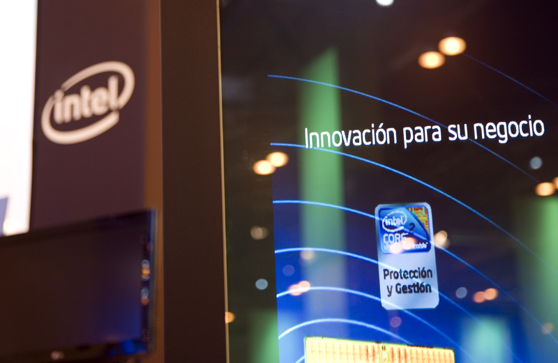 La empresa de microprocesadores Intel enfoca abiertamente su stand hacia el público de empresa.