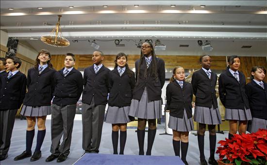 Niños que han repartido los premios del Sorteo de Navidad. EFE