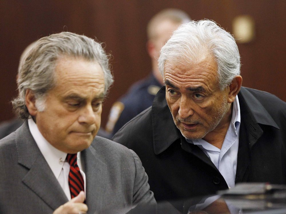 Strauss-Kahn observa a su abogado, Benjamin Brafman, con gesto de preocupación y nerviosismo