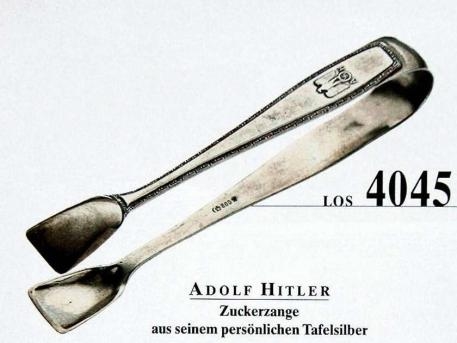 Unas pinzas para azucarillos con el águila, la la cruz gamada y las iniciales de Hitler por 1.200 euros.