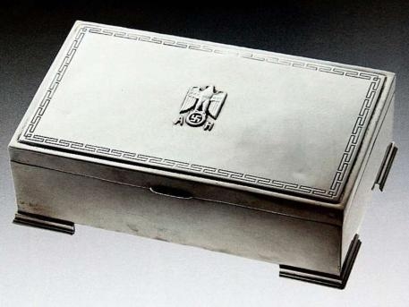 Una caja de plata de ley para ofrecer cigarrillos, personalizada también con el águila, la cruz gamada y las iniciales del dictador por 10.000 euros (unos 13.000 dólares).
