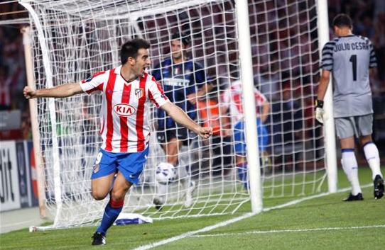 El centrocampista del Atlético de Madrid José Antonio Reyes celebra su primer gol frente al Inter de Milá.