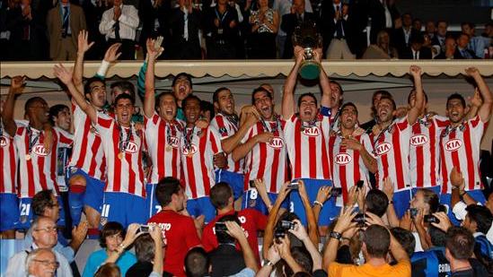 Los jugadores del Atlético reciben la Supercopa