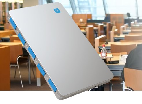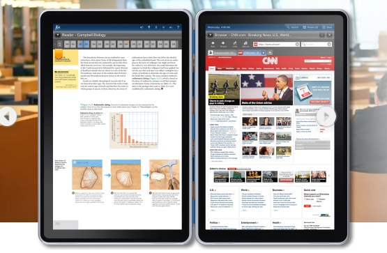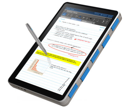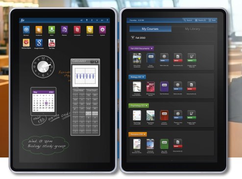 La tableta viene con dos pantallas táctiles de 14 pulgadas con un stylus y mezcla libros de texto, toma de notas, el acceso web, aplicaciones educativas, medios digitales de intercambio, características que lo convierten en un atractivo y poderoso dispositivo educativo.