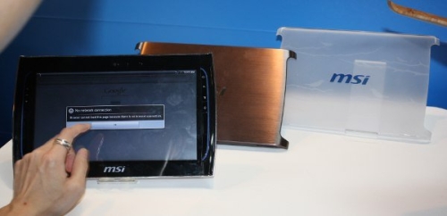 El WinPad de MSI, que funciona con Windows 7, cuenta con un procesador Intel Atom Z530, 2GB de memoria RAM, 32GB de almacenamiento, dos puertos USB, web cam, lector de tarjetas de memoria, y salida HDMI, ideal para reproducir vídeo en formato 720p.