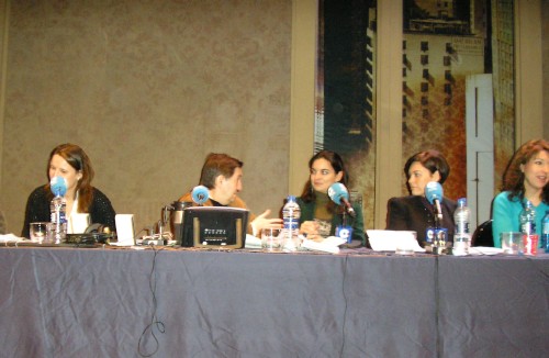 De izquierda a derecha en la fotografía, Isabel González, Federico Jiménez Losantos, Paloma García Ovejero, Rosana Laviada e Ileana Izverniceanu, portavoz de la OCU. Foto: (FB/SP)