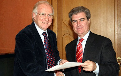 El presidente de la SGAE con el alcalde de Madrid, Alberto Ruiz Gallardón