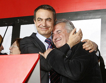 Rubalcaba y Bautista se funden en un abrazo en 2006, en la Celebración de la Conferencia Política del Partido Socialista