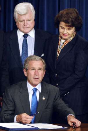 Ted Kennedy con George Bush en 2002. (Fuente: United States Congress)