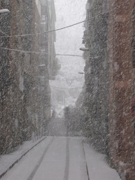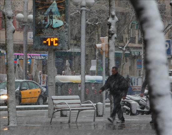Los termómetros del barrio del Port Vell en la Barceloneta marcan la temperatura de -1 grados. El largo invierno, al que aún le quedan dos semanas de vida, se está resistiendo a dejar Cataluña, como muestra el temporal de nieve y viento que está afectando a prácticamente todo el territorio, provocando númerosos problemas tanto en la red viaría como ciudadana.