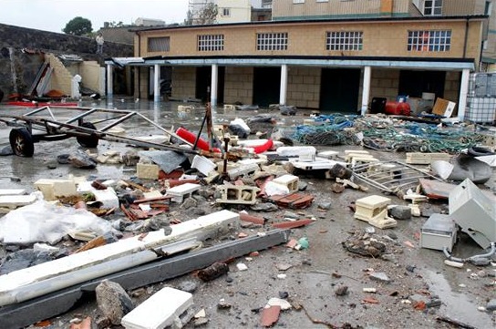 Operarios luchan contra las olas
