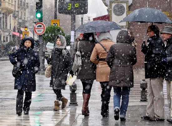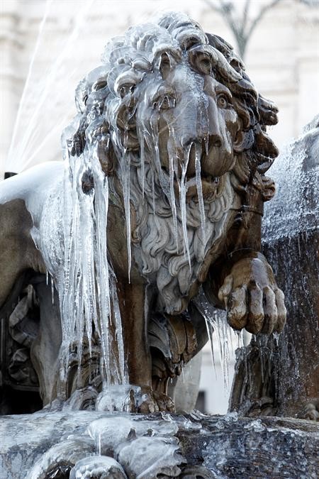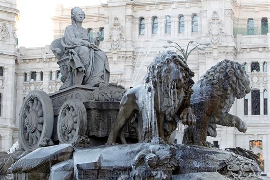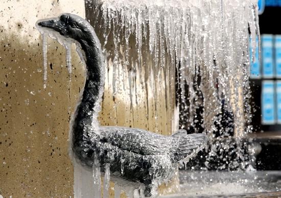 El aspecto de la estatuta se debe a las fuertes heladas registradas en la capital durante la noche.