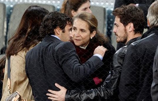 La Infanta Elena, el capitán del Real Madrid, Raúl González (i), y el portero del Real Madrid, Iker Casillas.